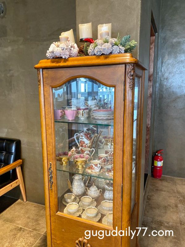 然後還有古典的櫥窗裡,收集了很多漂亮的杯盤器皿